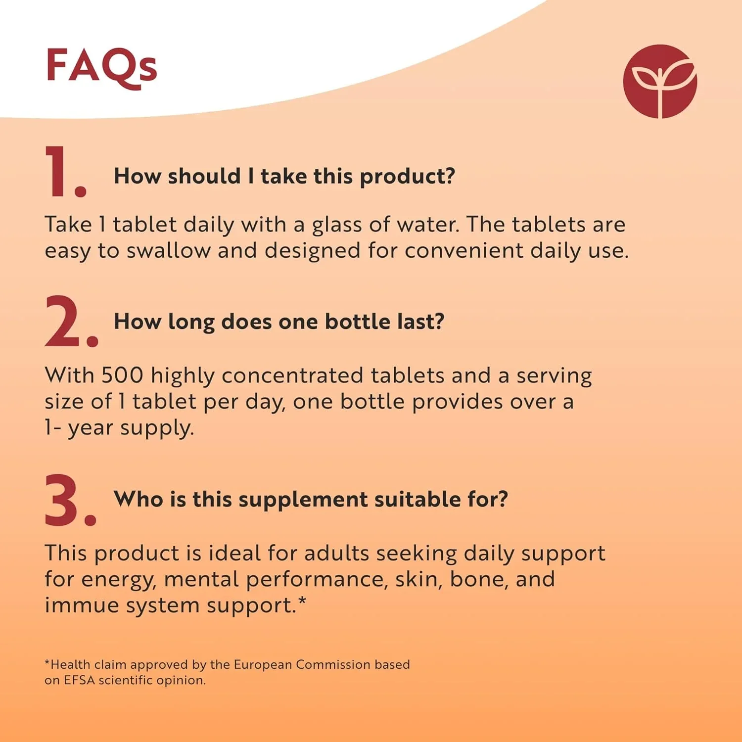 Enriched with 80mg of Vitamin C and 10µg of Vitamin D, it’s designed to support energy levels, immunity, and overall well-being—perfect for anyone looking for vegetarian supplements or vitamins for tiredness and fatigue.